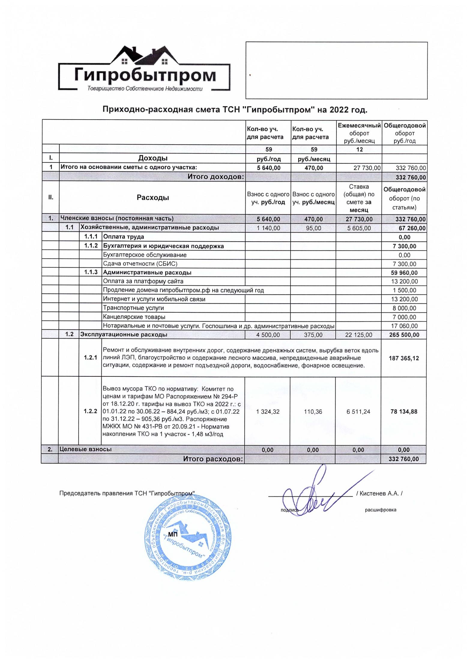 Приходно-расходная смета на 2022 год